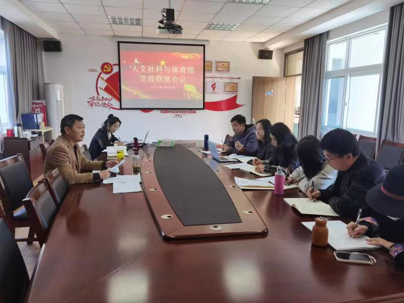 3月15日下午,人文社科与体育部党总支书记、主任张毅主持召开2023年部门工作第一次党政联席会议,部门党总支委员、教研室主任、办公室成员参加会议。