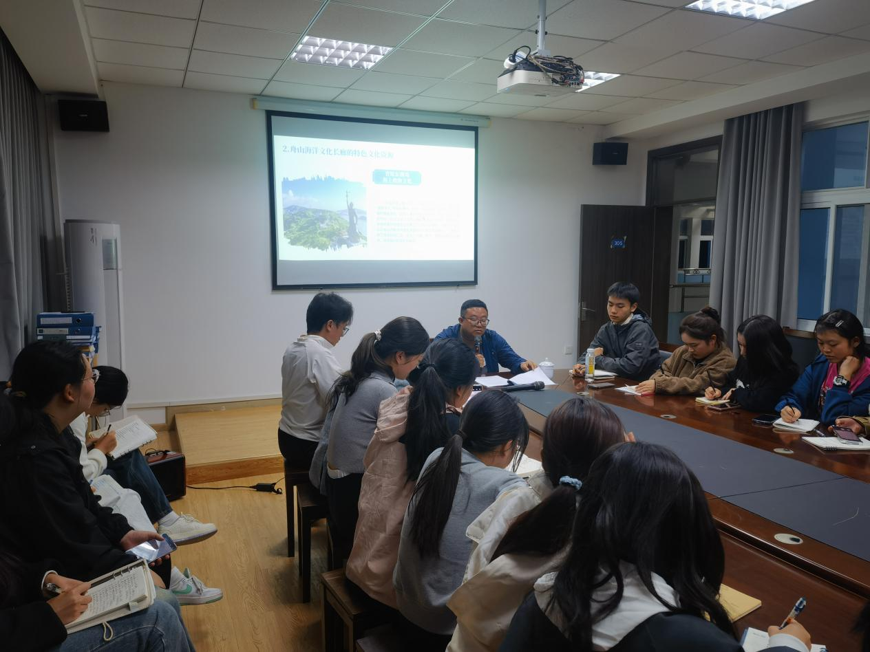 本次讲座邀请到了舟山市文化和广电旅游体育局政策法规处处长陈展之,陈处长融合学术理论与实际案例,凭借丰富的实践经验,深入分析了舟山海洋文化的历史与现代价值,为师生们提供了深刻的学术洞察和实践指南。讲座中所探讨的海洋文化长廊建设、海岛开放建设、海洋旅游发展等内容极大拓展了同学们对舟山海洋文化的视野,提升了他们对海洋文化研究与创新的热情,激发了他们对传统文化与现代发展相结合更深入的思考。