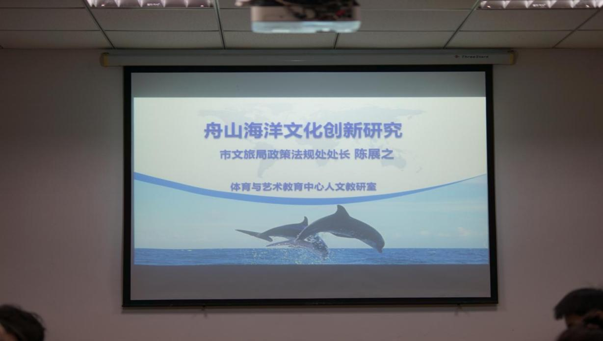 2024年11月7日,由体育与艺术教育中心“海纳”学共体主办的专业讲座“舟山海洋文化传承与创新”在志诚楼四楼实训活动中心圆满落幕。此次活动旨在培育高校学生对海洋文化的深度认知和理解,激发创新思维,推动舟山区域海洋文化的传承与发展。