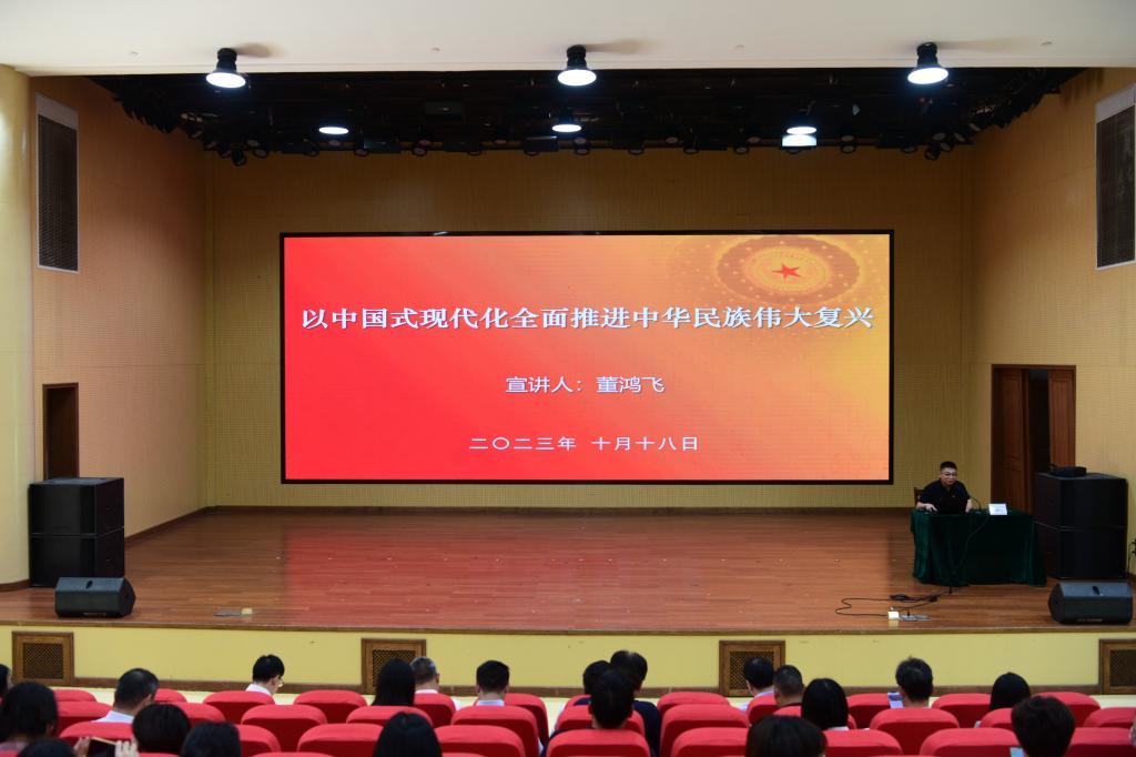 为深入学习贯彻党的二十大精神,引导广大师生员工把思想和行动统一到党的二十大精神上来。根据学校工作安排,校党委宣传部邀请部门思政教研室主任董鸿飞开展主题为“以中国式现代化全面推进中华民族伟大复兴”的专题讲座。