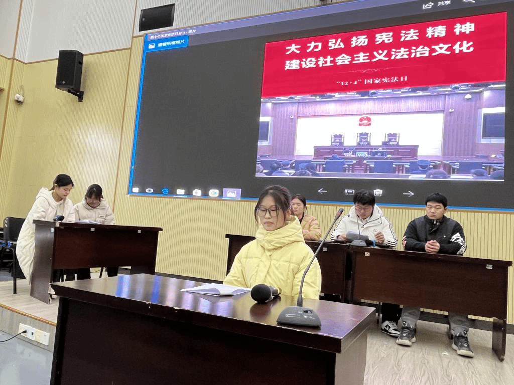 在第十个国家宪法日来临之际,人文社科与体育部思政教研室全体教师依据教育部、中宣部和司法部通知精神,根据部门思政课程建设工作计划安排组织2023级全院学生成功开展了“弘扬宪法精神建设社会主义法治文化”的教育活动。
